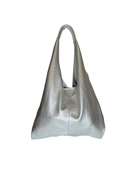 A minimalist, unstructured tote crafted from smooth lambskin leather with a soft, relaxed silhouette. Designed with a wide shoulder strap for effortless wear and subtle seam detailing down the center. Includes an attached pouch on a leash strap for small essentials.